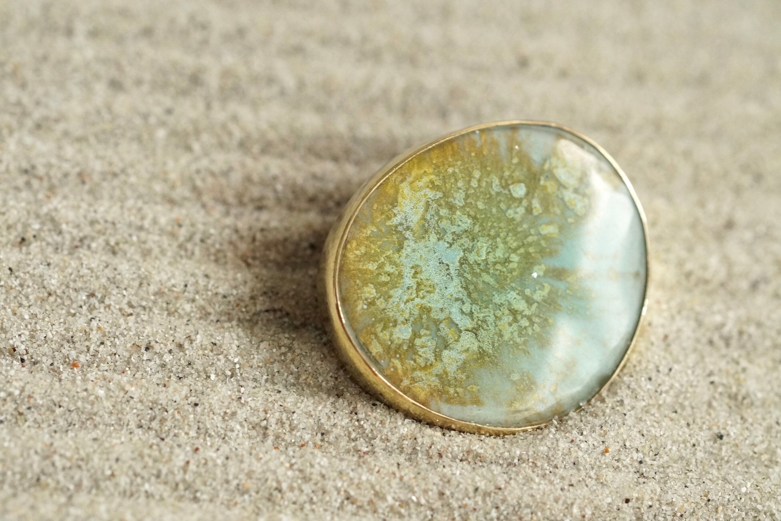 こちらは青いガラスと金色でターコイズや鉱物を思わせる模様ができました。