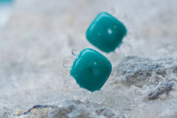 耐熱ガラスピアス 【時シラズ】 Aタイプ カラー/ p=ピーコック