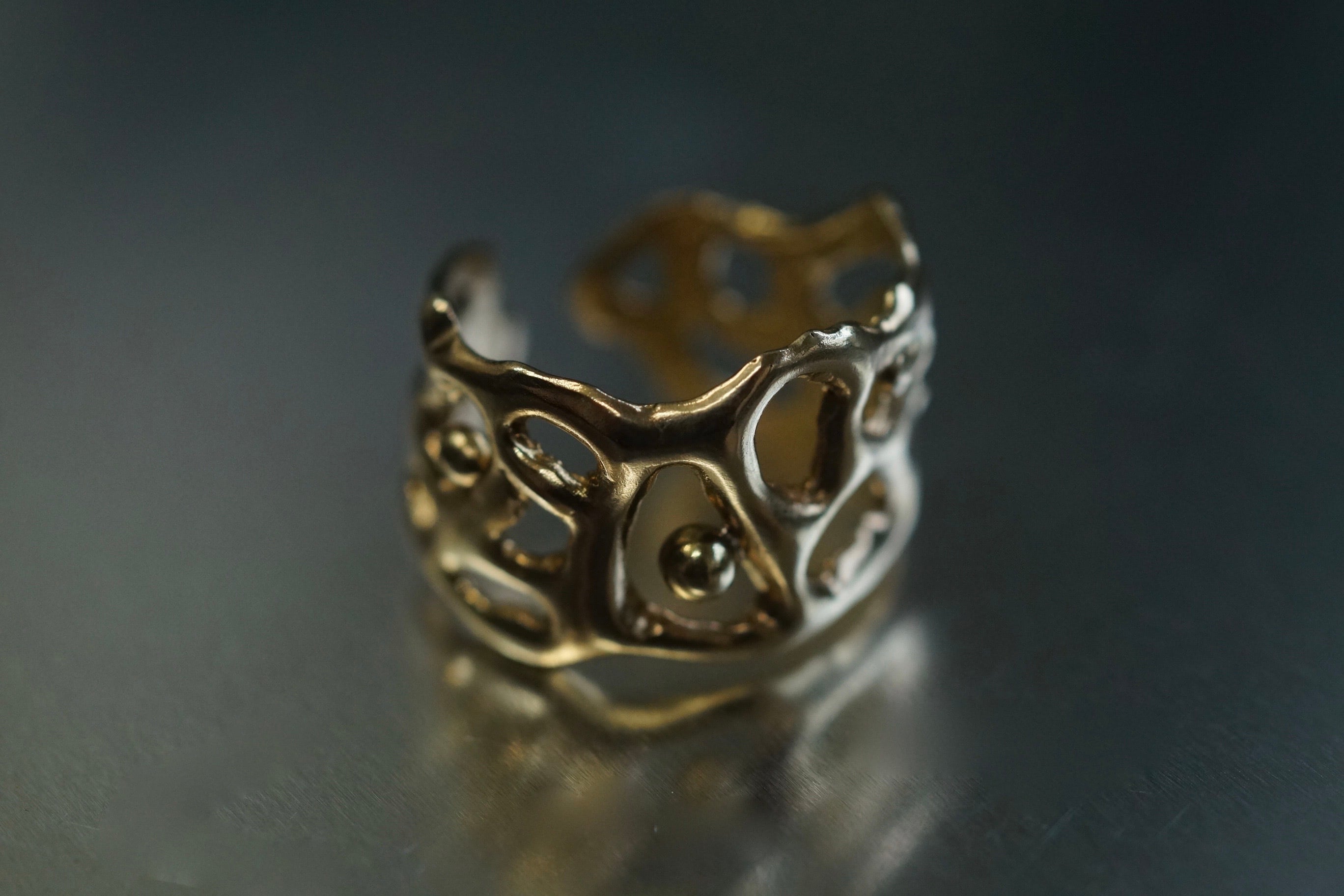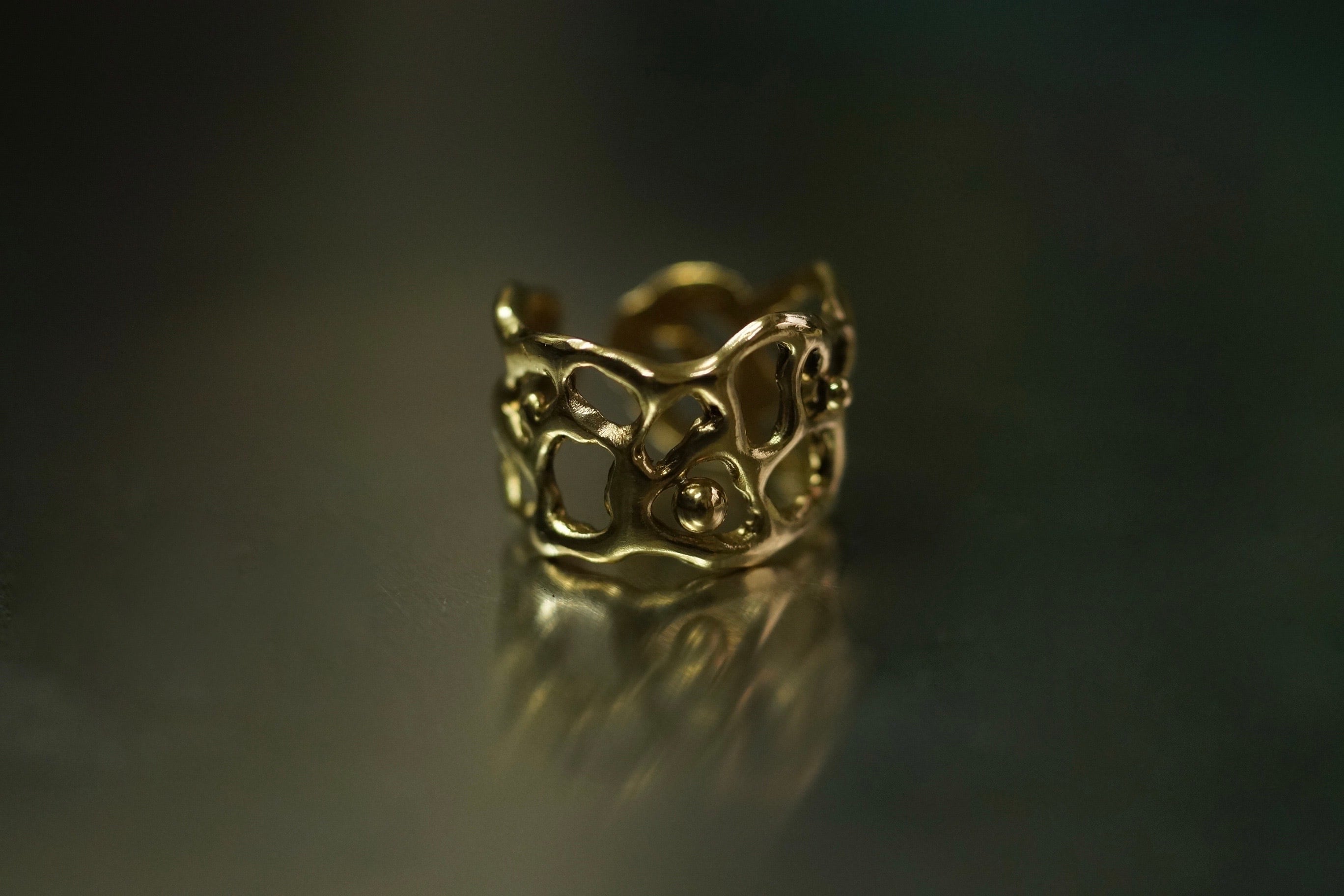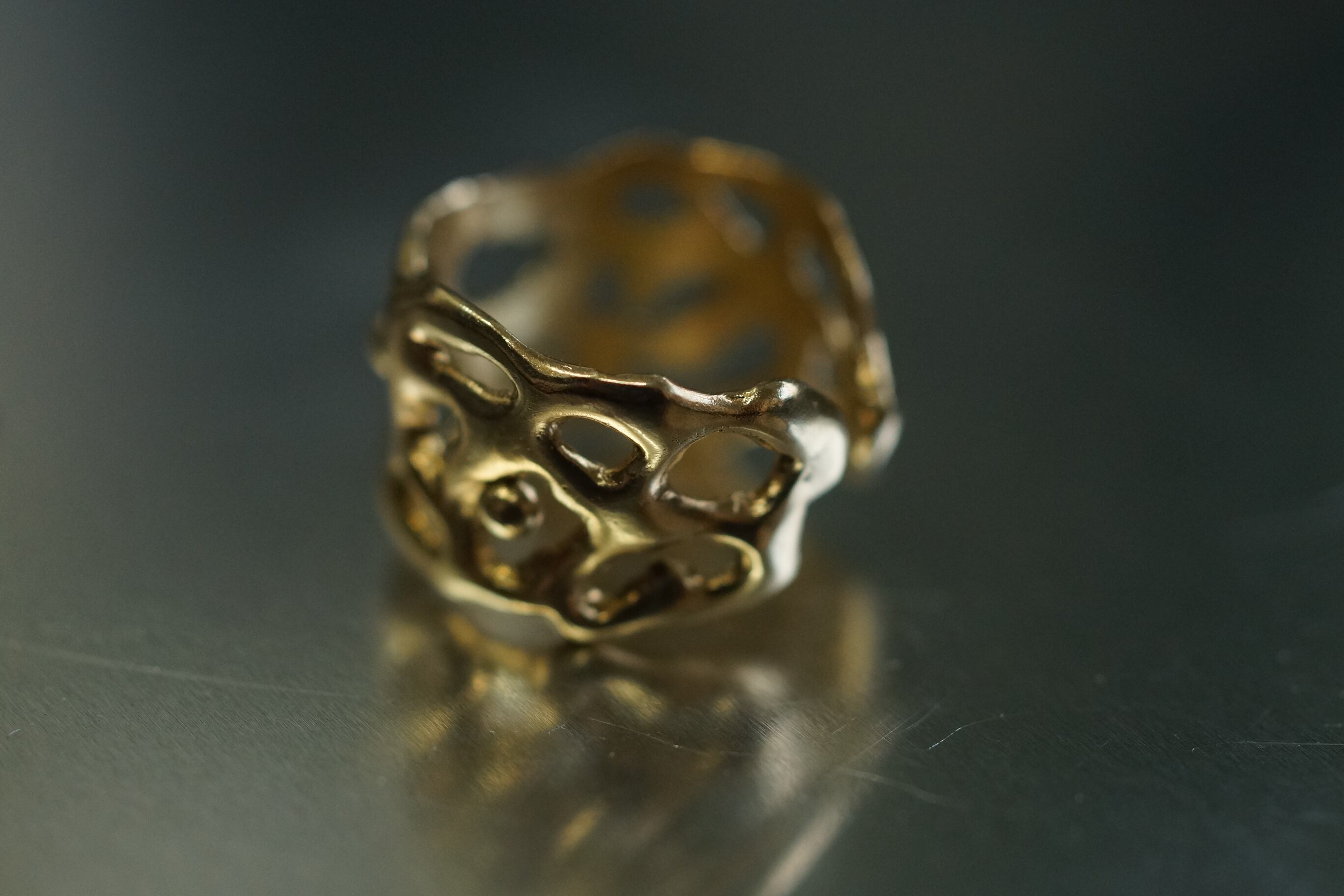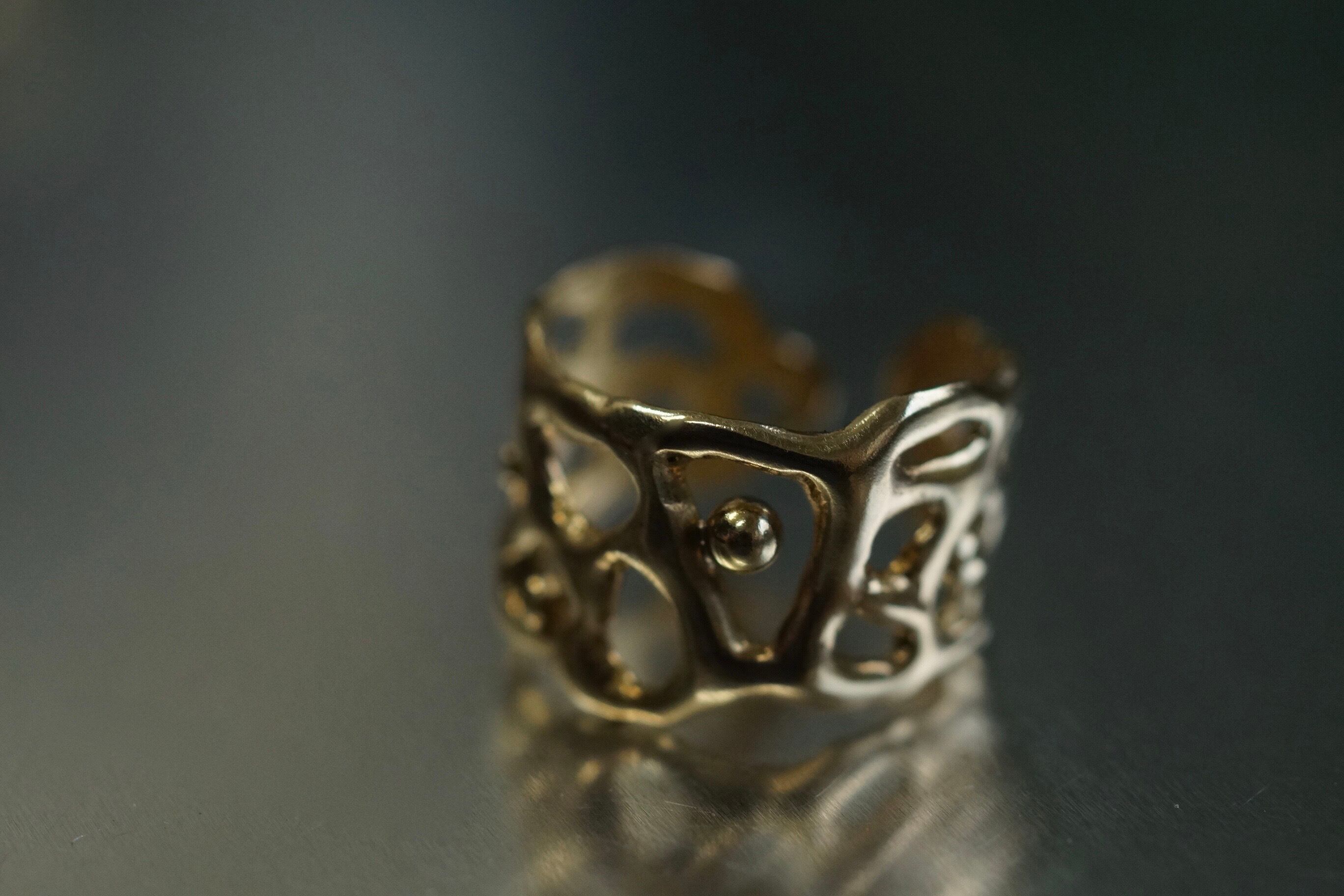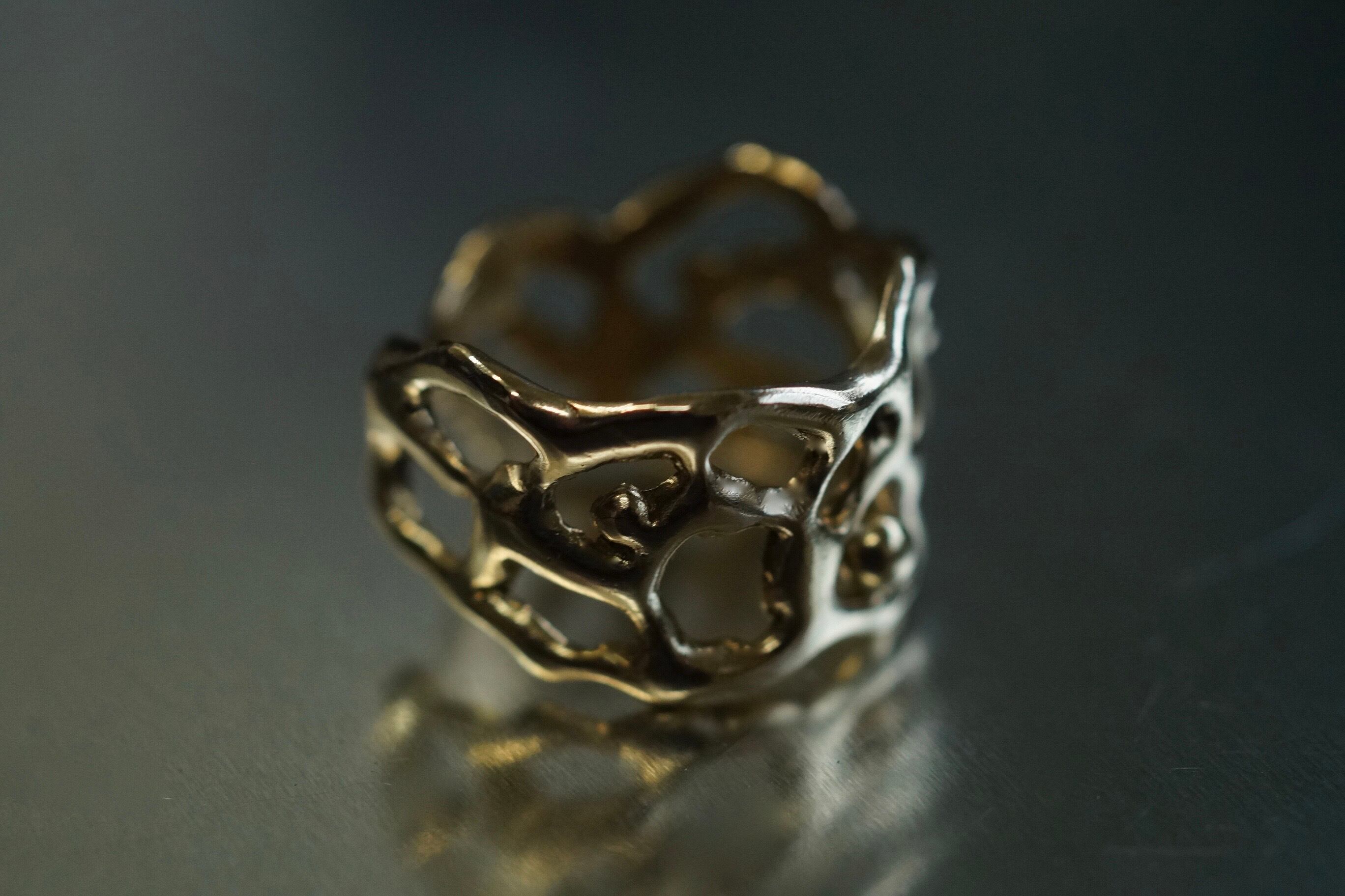 ワックスモデリングから鋳造した真鍮製の一点物リングです。