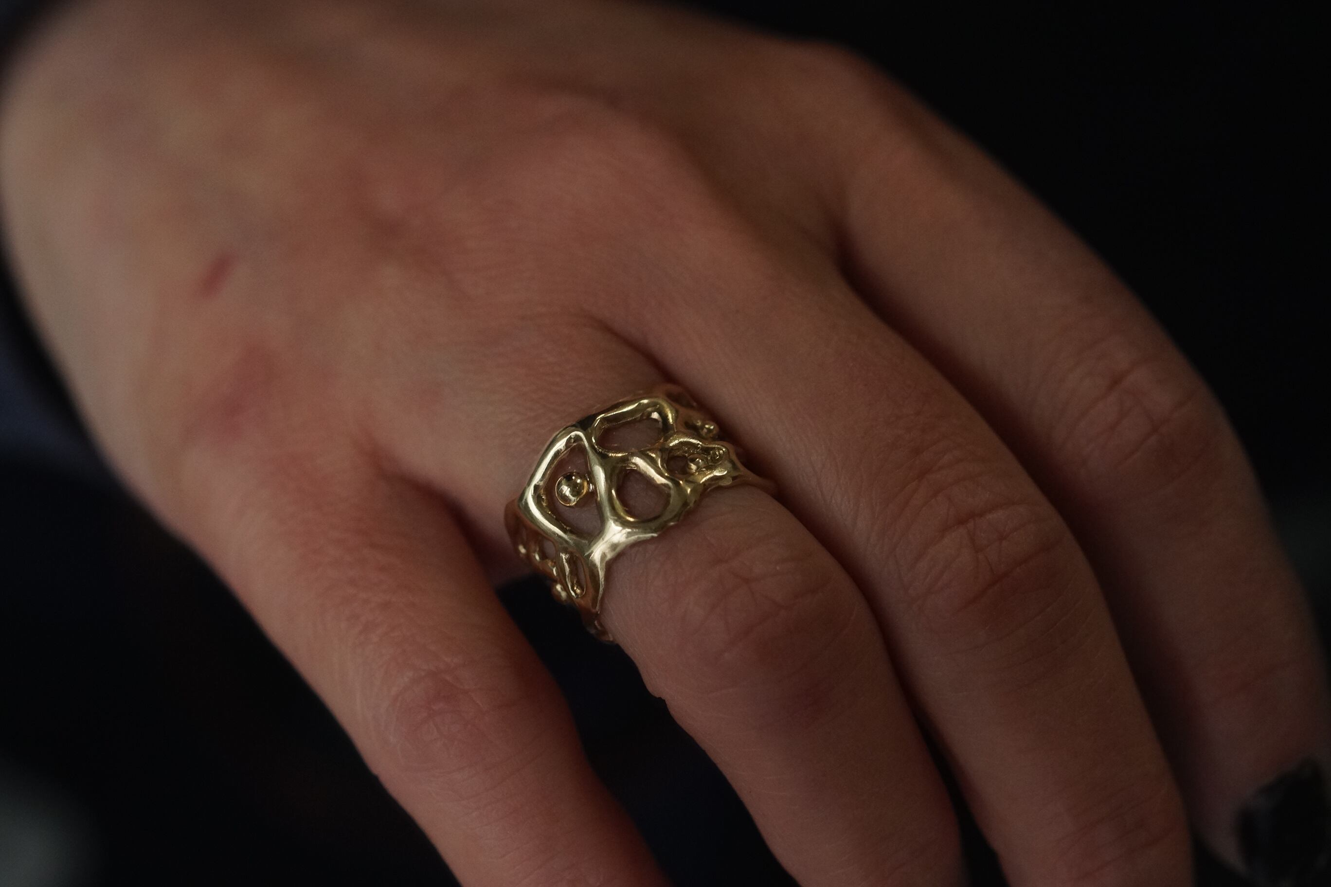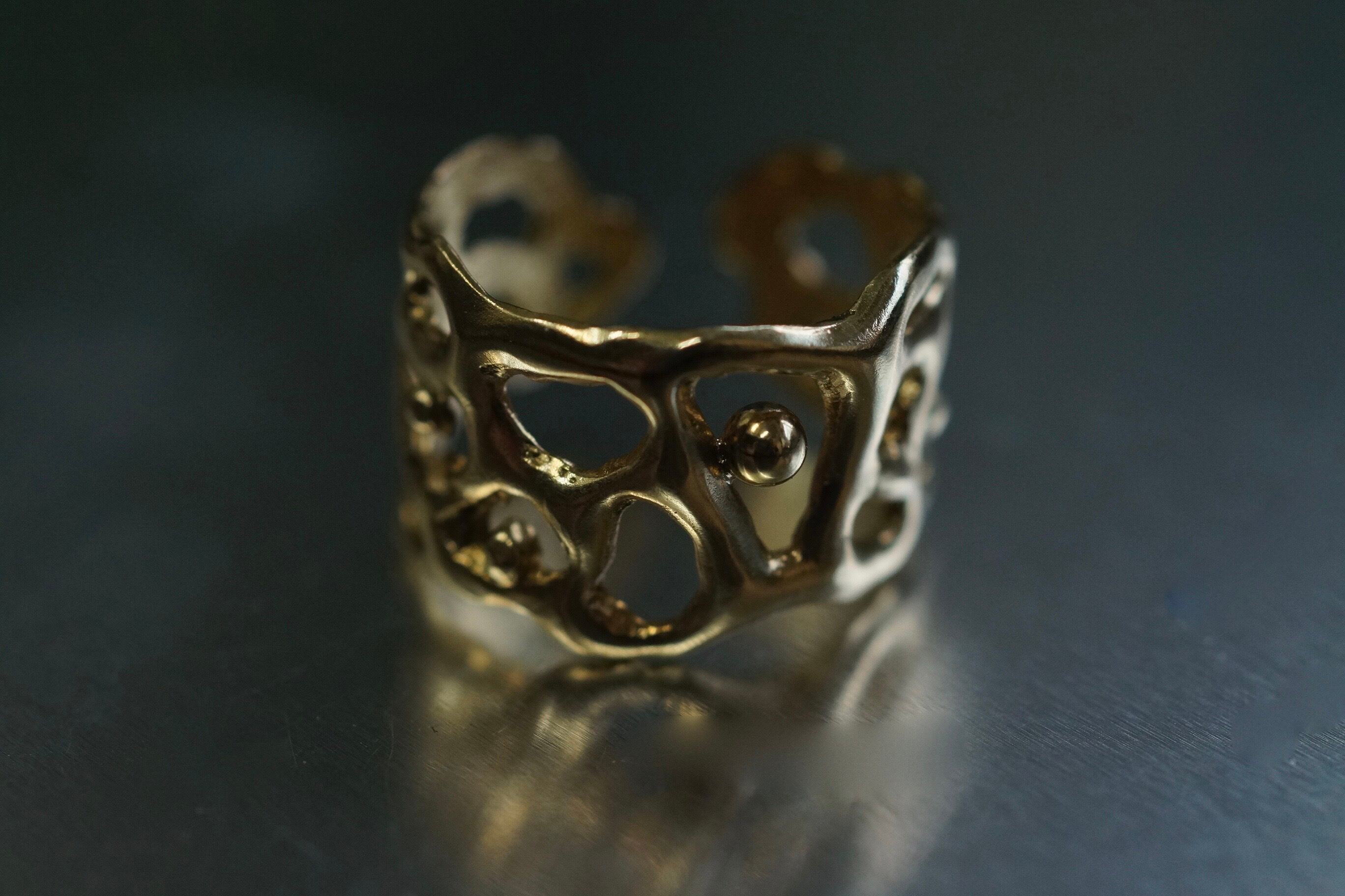 ワックスモデリングから鋳造した真鍮製の一点物リングです。