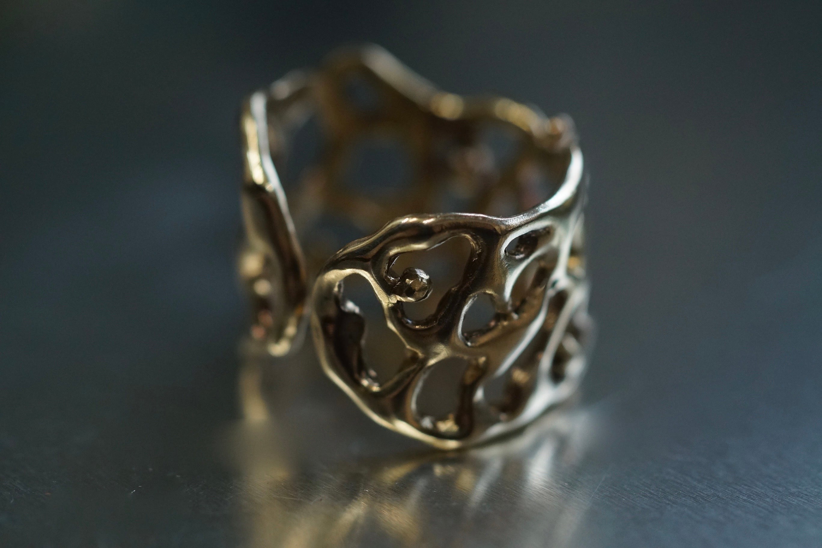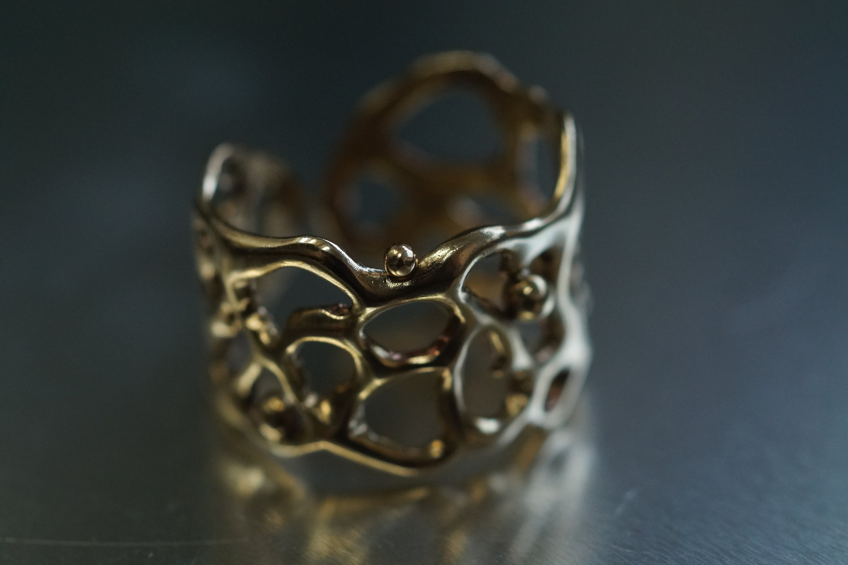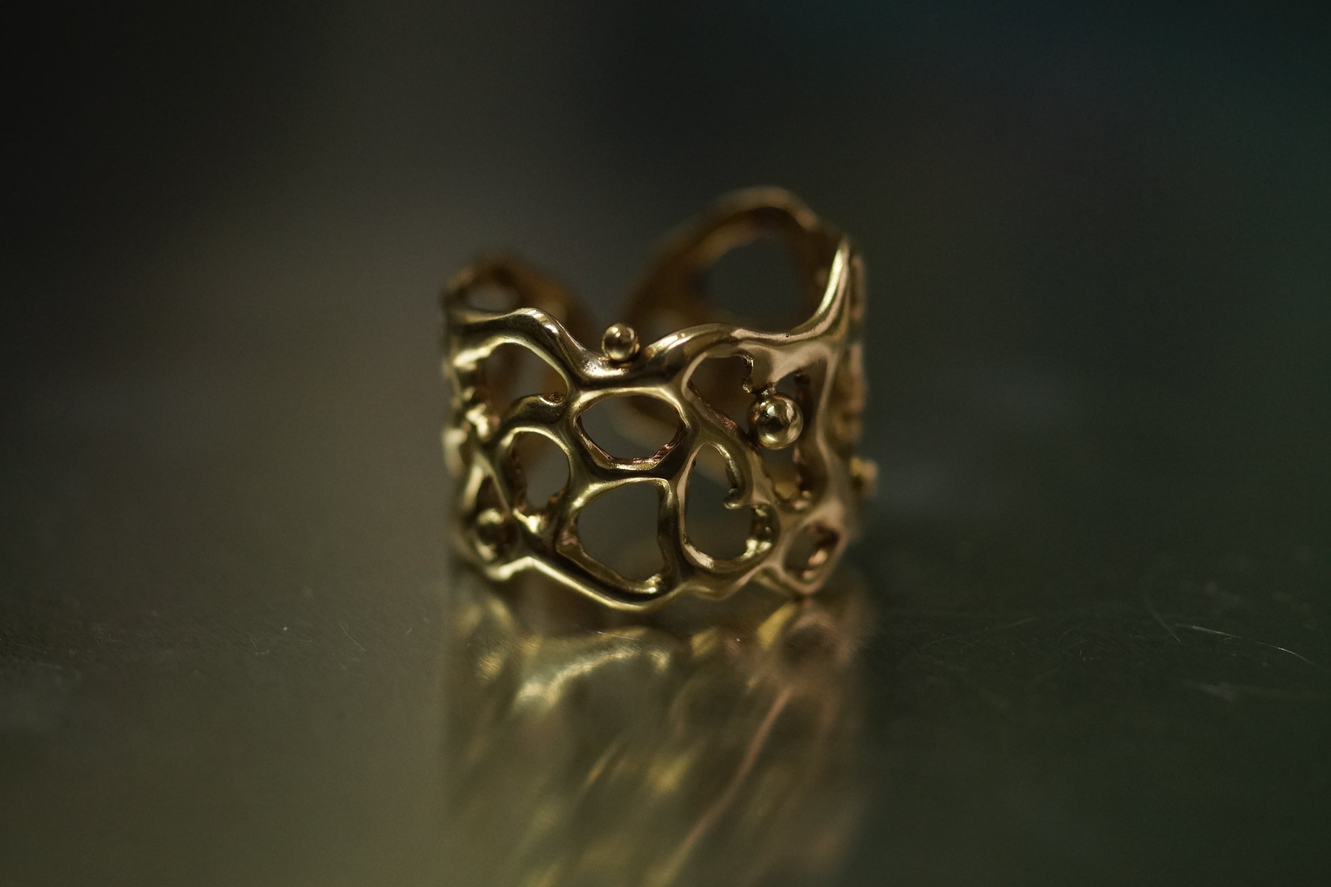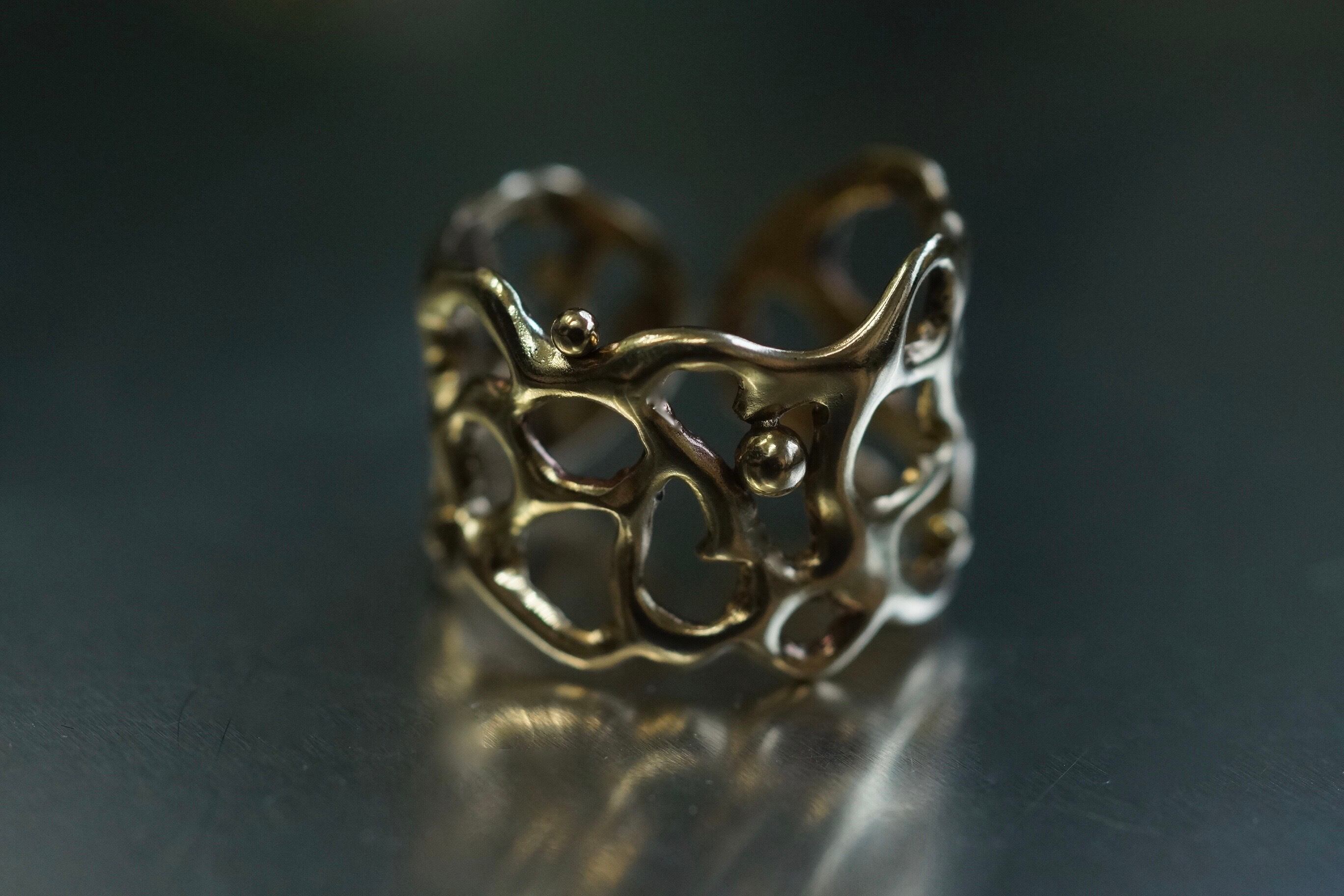 ワックスモデリングから鋳造した真鍮製の一点物リングです。