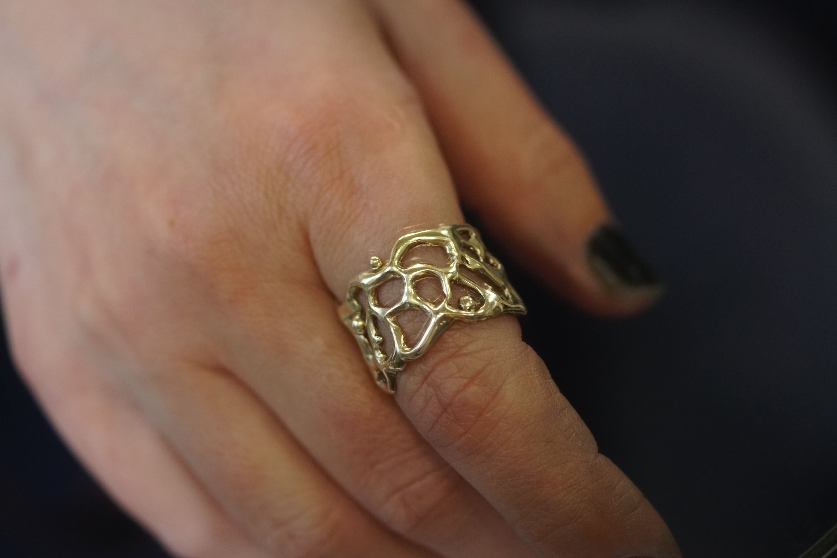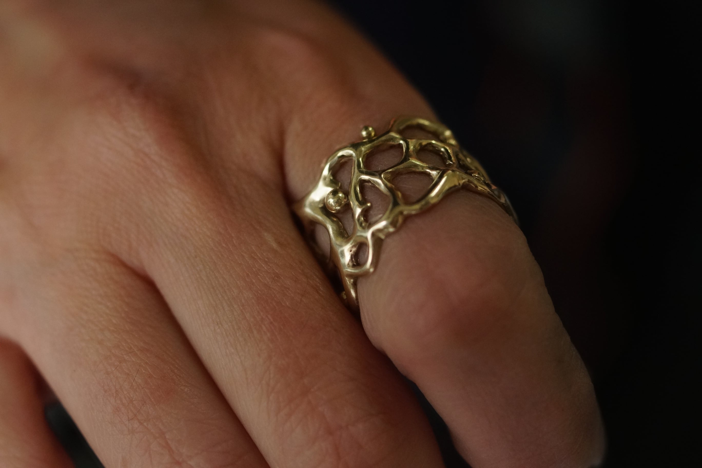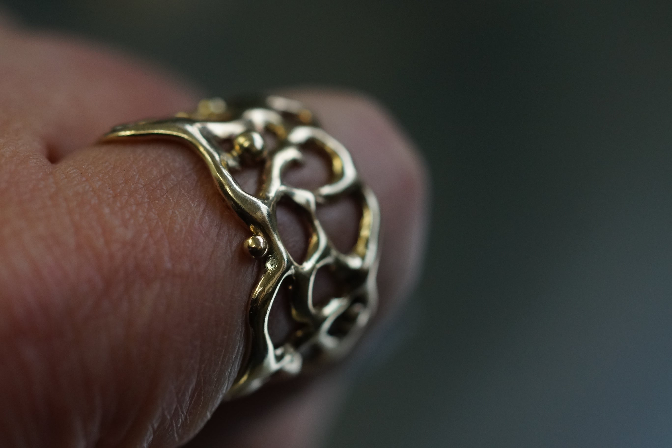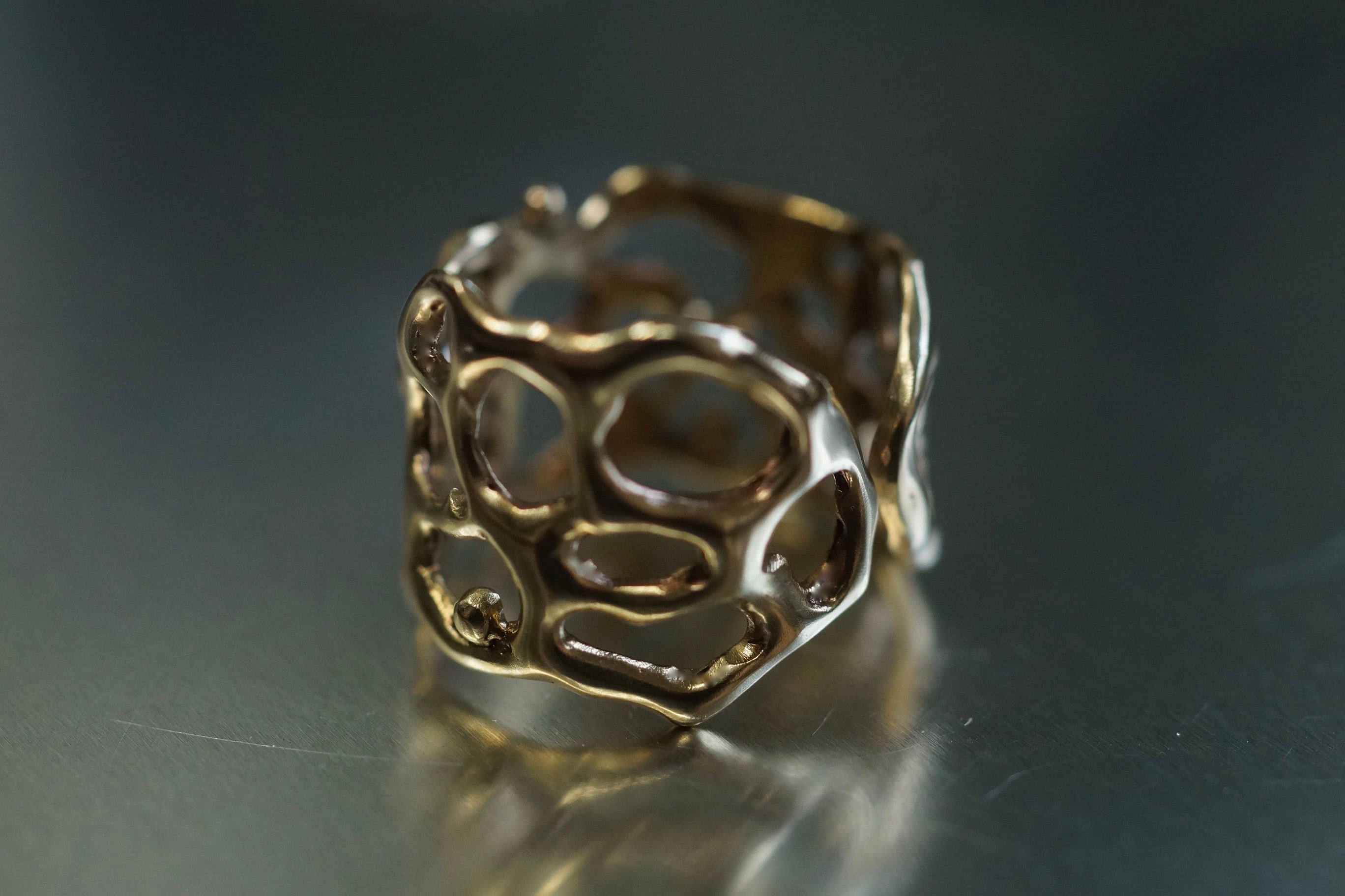 ワックスモデリングから鋳造した真鍮製の一点物リングです。