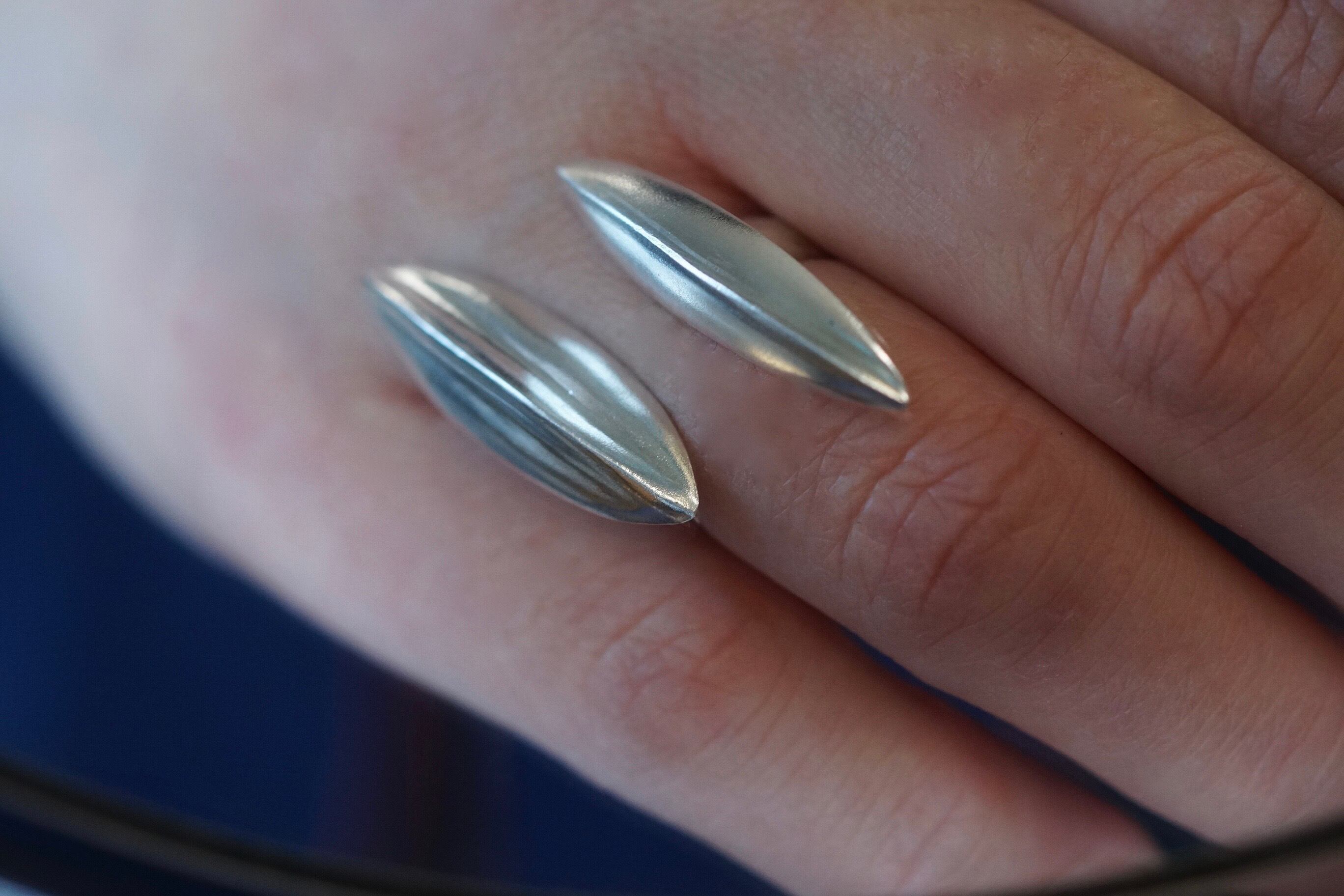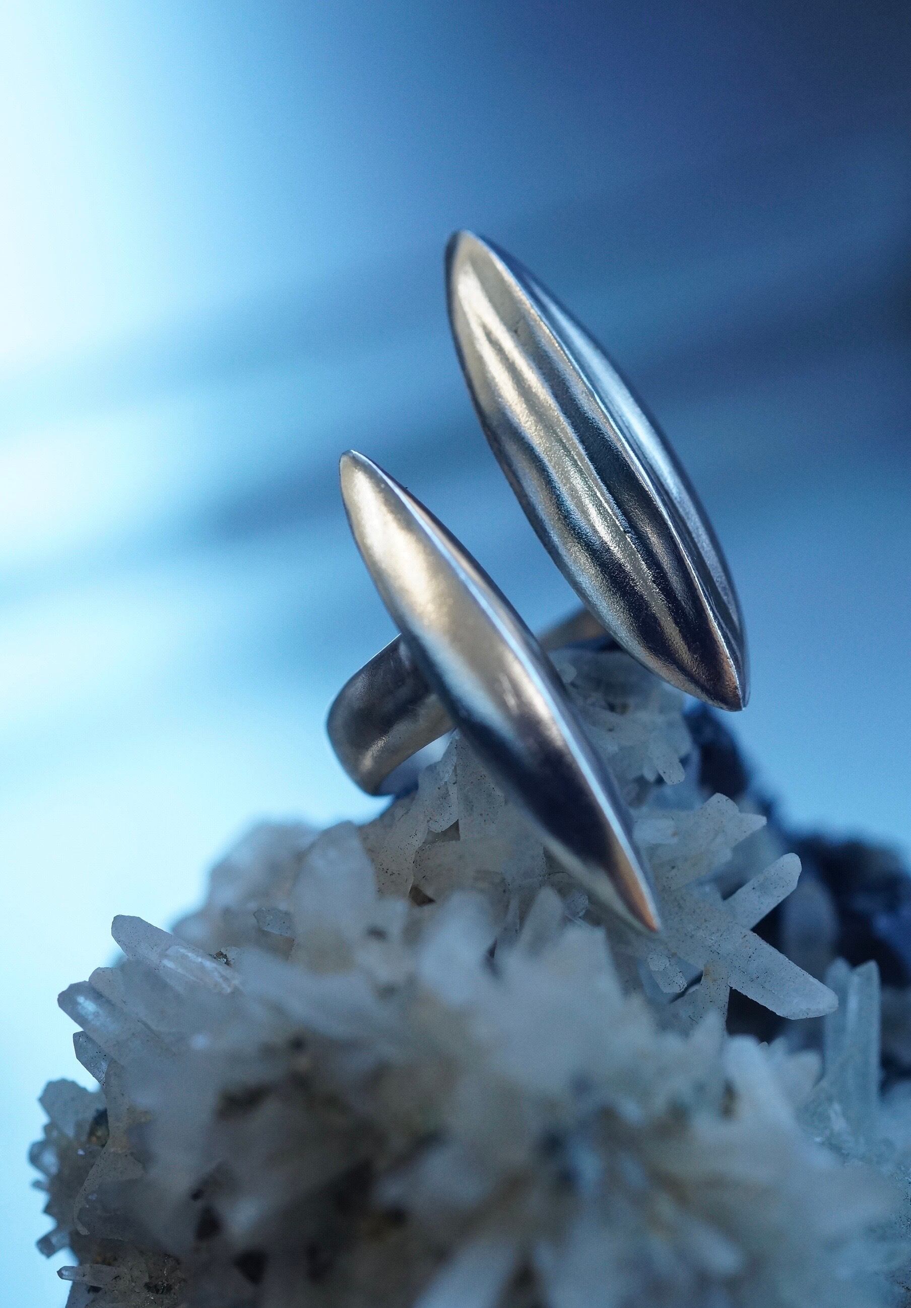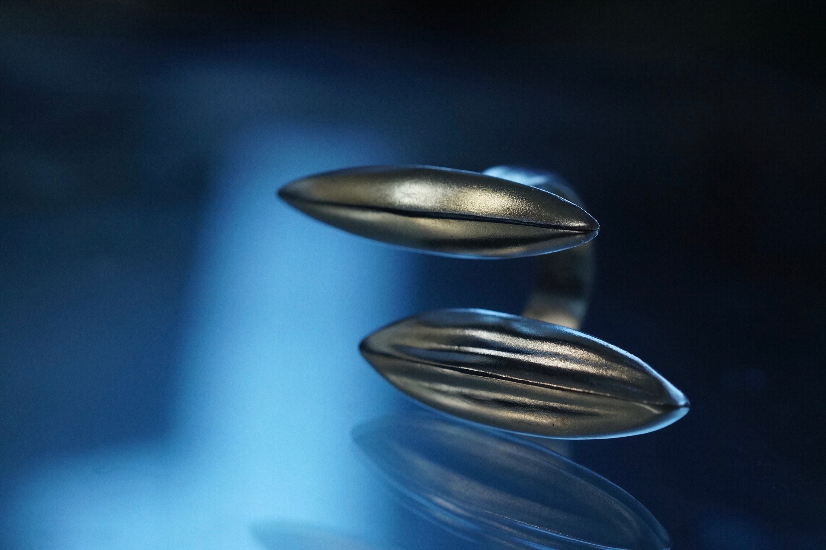 遠目にはとてもシャープな印象ですが、近くで見ると棘のフォルムを形造っていて有機的な側面も持ち合わせたリングです。