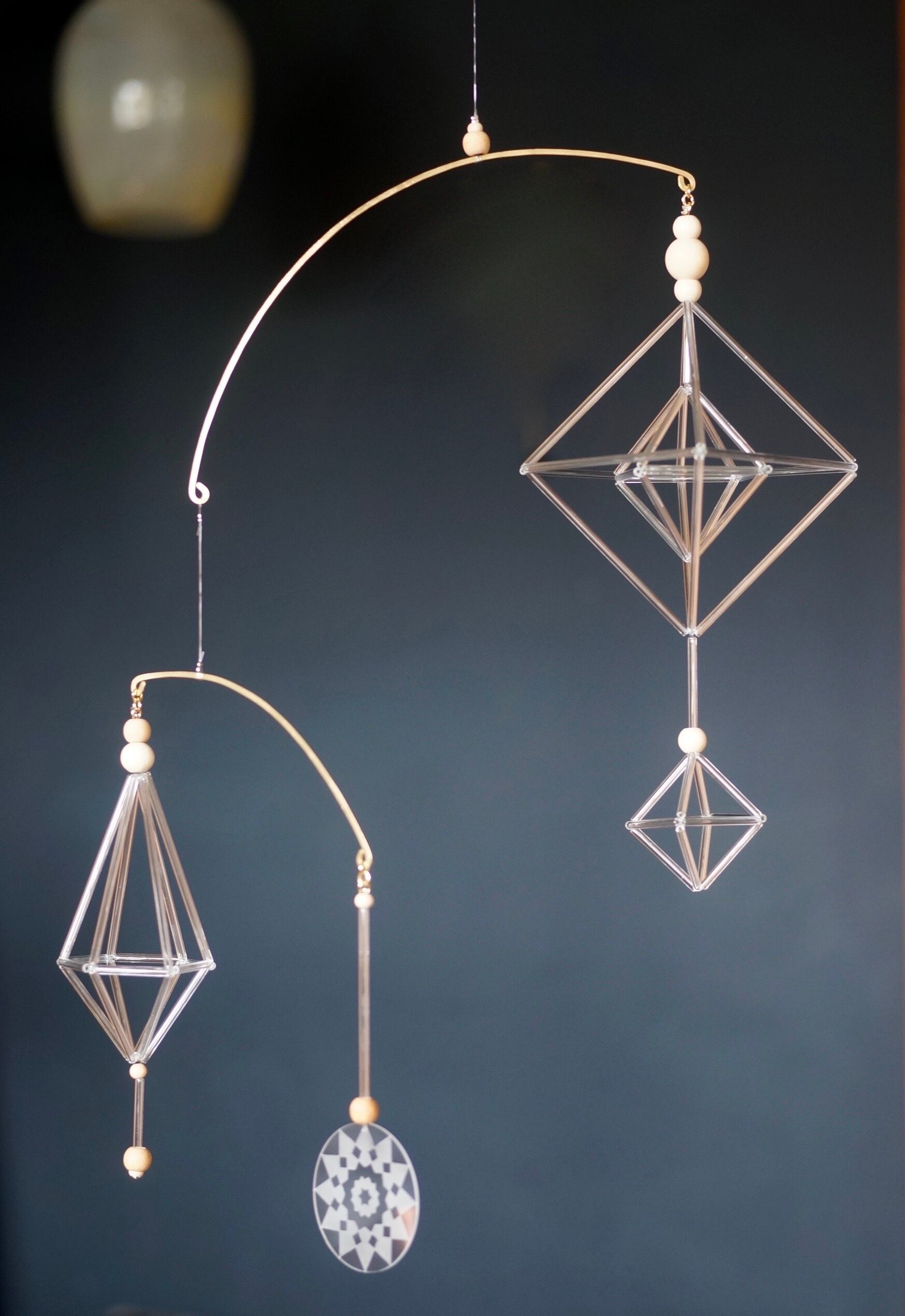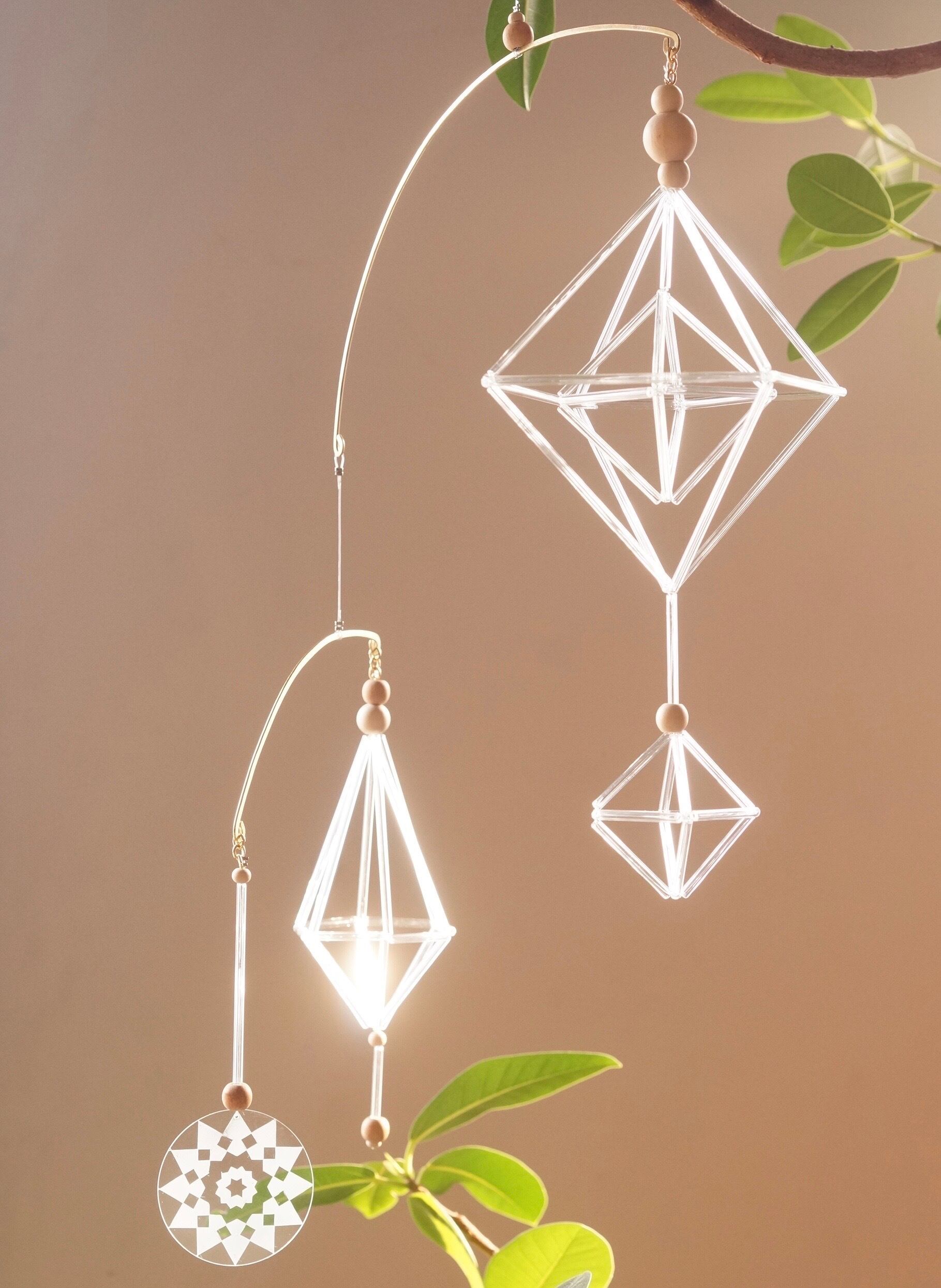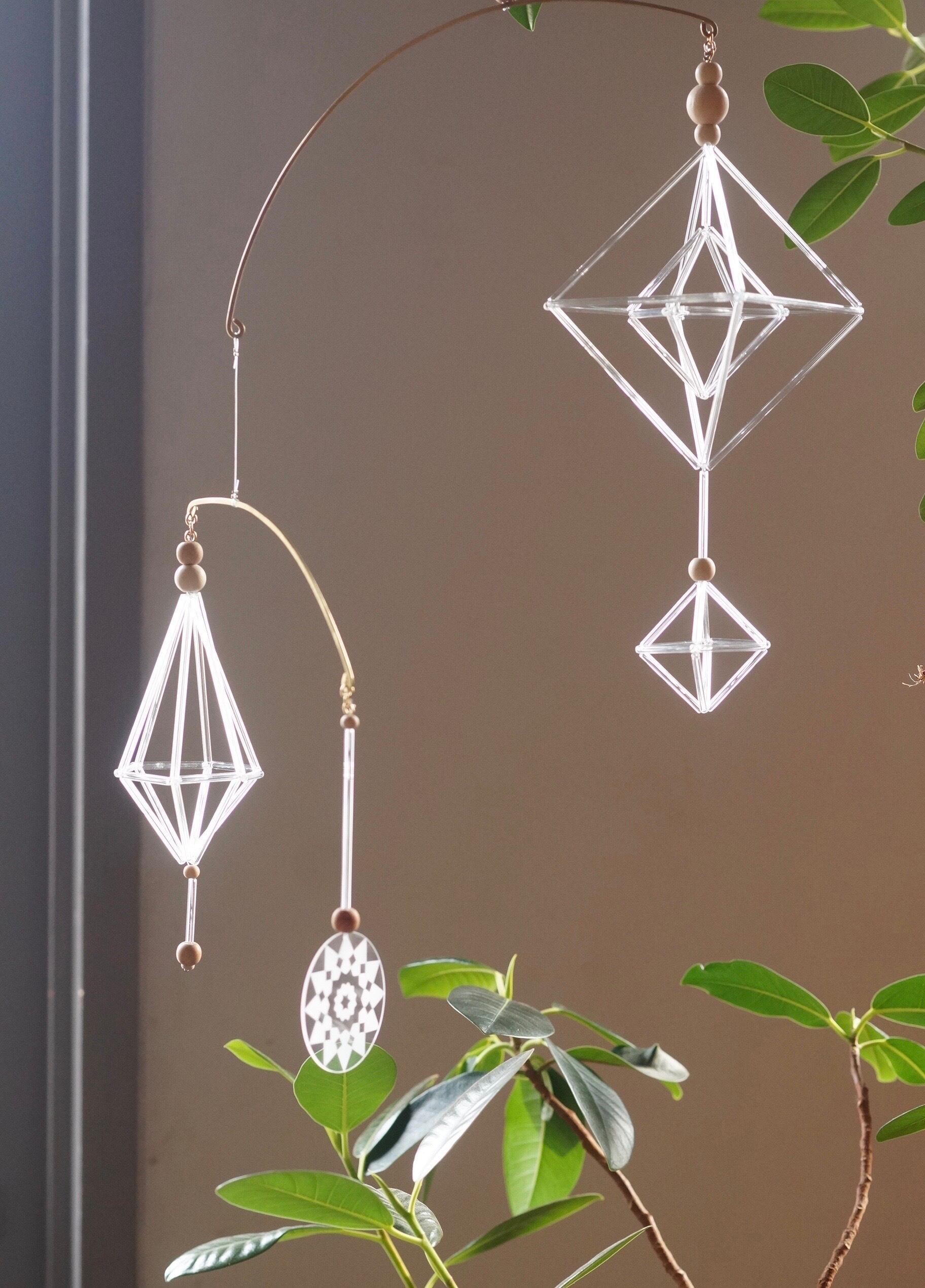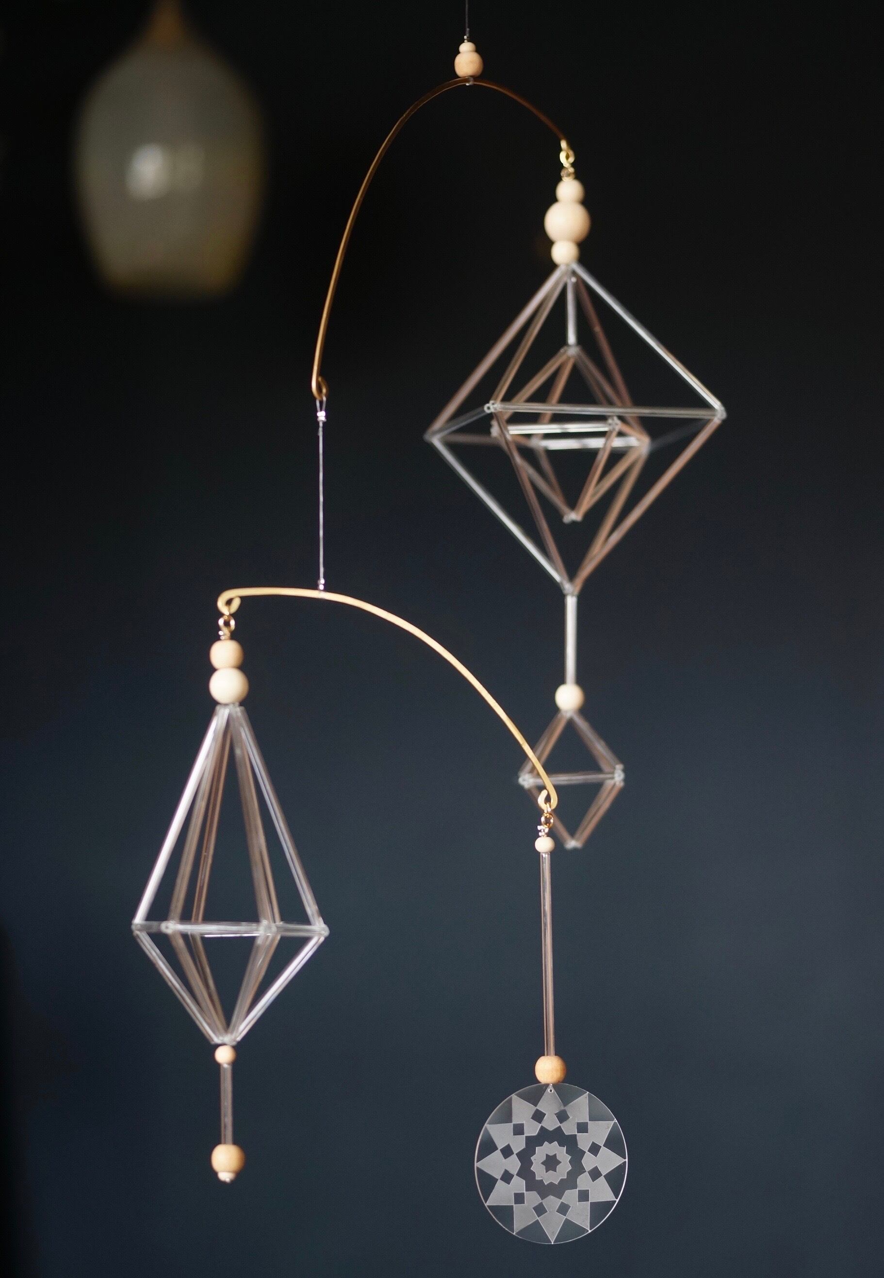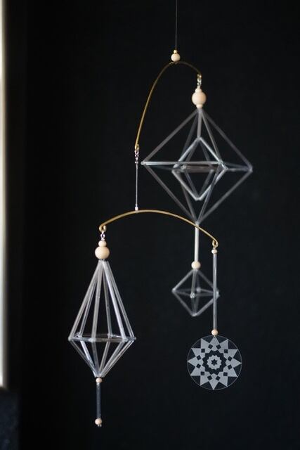 耐熱ガラスのストローを組み上げて使ったモビール。